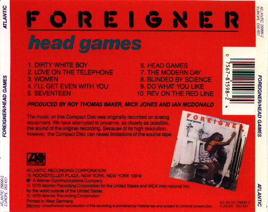 Jewel case info: (WG inserts with barcode) ridged six-tab, two-dimple, "43" is embossed on one tab