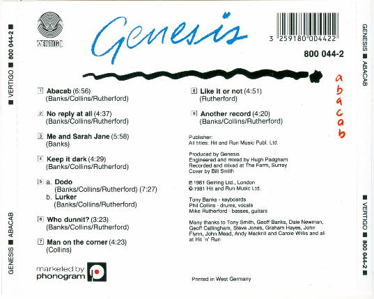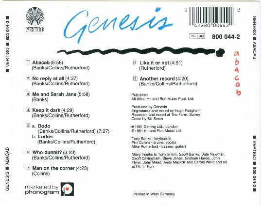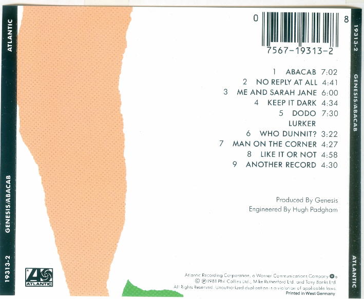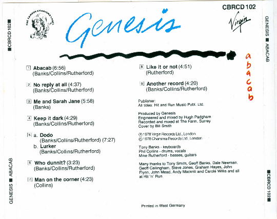 Charisma CBRCD 102, for distribution in the U.K.