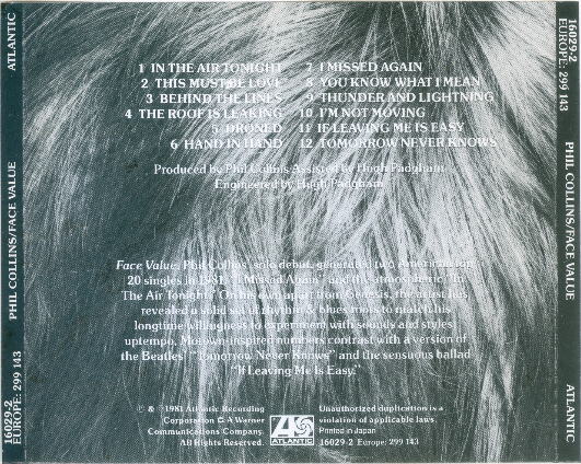 Later copies of this disc come with a rear tray card that lacks the "Printed in" statement.