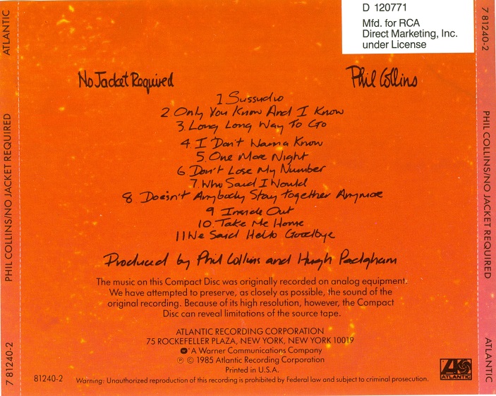 Where the barcode would normally reside, "D 120771 Mfd. for RCA Direct Marketing Inc.