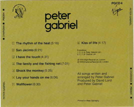 Released by Virgin Records / Charisma as PGCD4, this was issued in the UK.