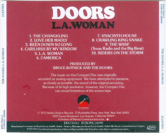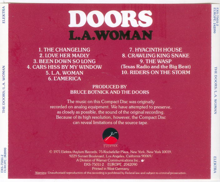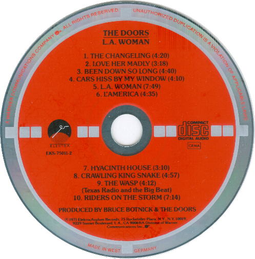 MADE IN WEST | | GERMANY BY POLYGRAM, without the "squiggle" in the Elektra logo (d).