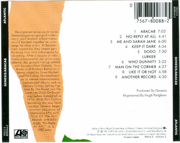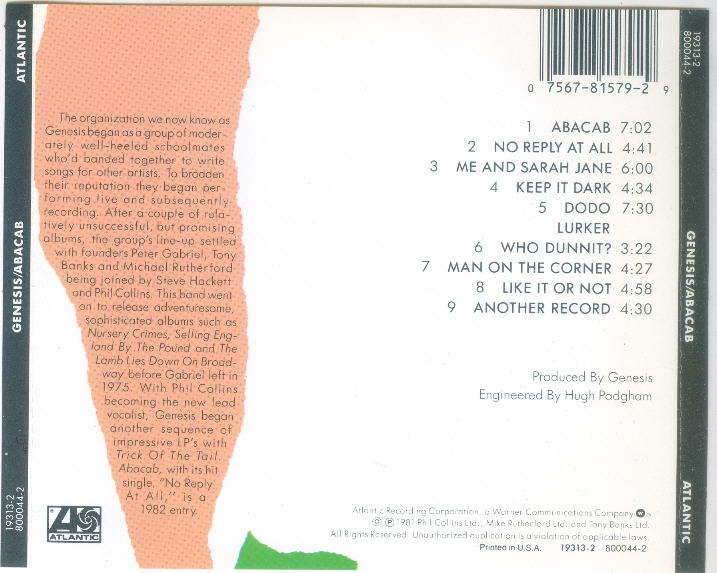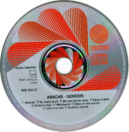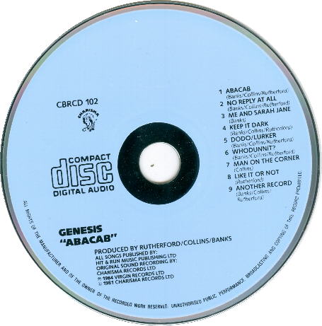 Charisma CBRCD 102, for distribution in the U.K.