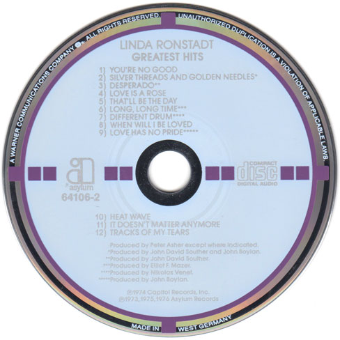 MADE IN | | WEST GERMANY, no manufacturer on disc (j).