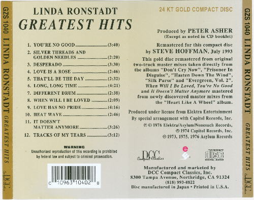 Gold disc released circa 1994, remastered for this reissue by Steve Hoffman.