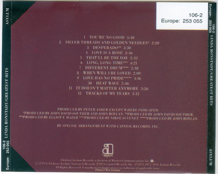 Note the catalog numbers have changed to reflect the Columbia House number.