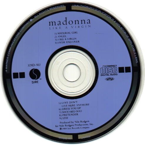 (c) Matrix: 32XD-102 11A3 +++++ ; US number under logo; perimeter style (s); CSR COMPACT DISC (X3) embossed in plastic center.