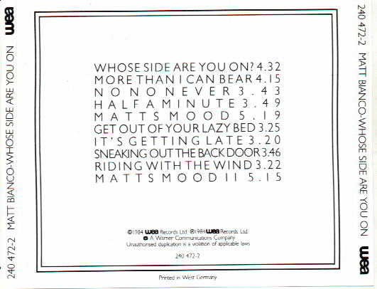 record store employees don't know this, so Matt Bianco CDs are frequently