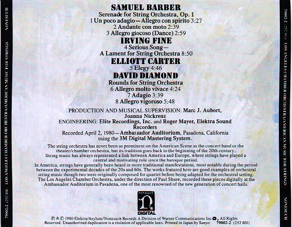 Notes: This target CD is scarce, as are most Nonesuch target discs.