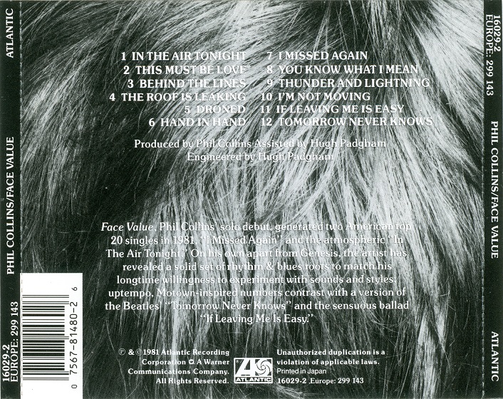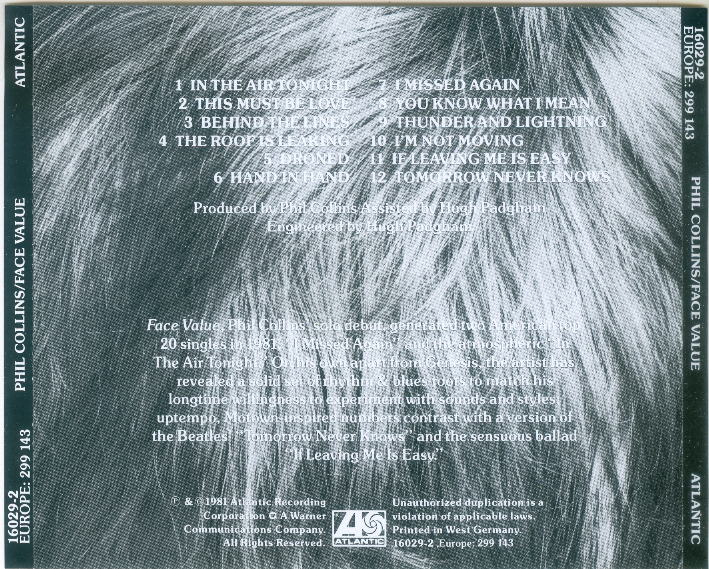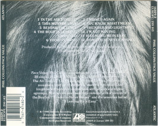 Later copies of this disc come with a rear tray card that lacks the "Printed in" statement.