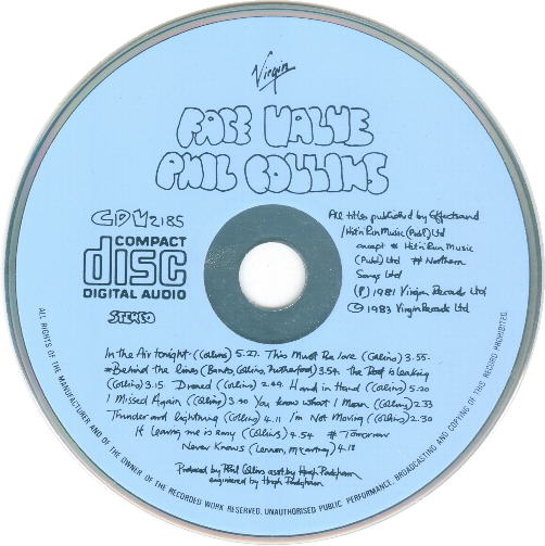 Released by Virgin Records as CDV 2185, this was issued in the UK, and probably