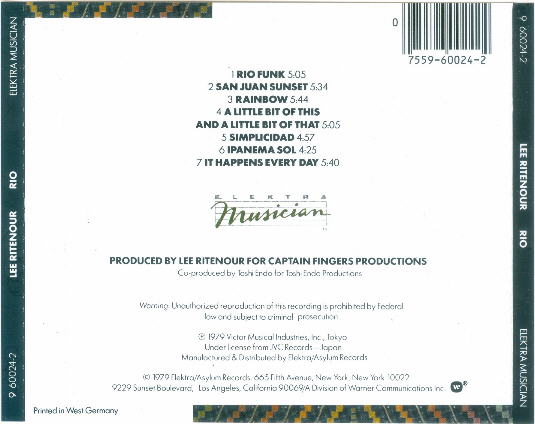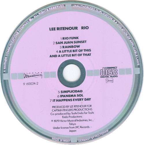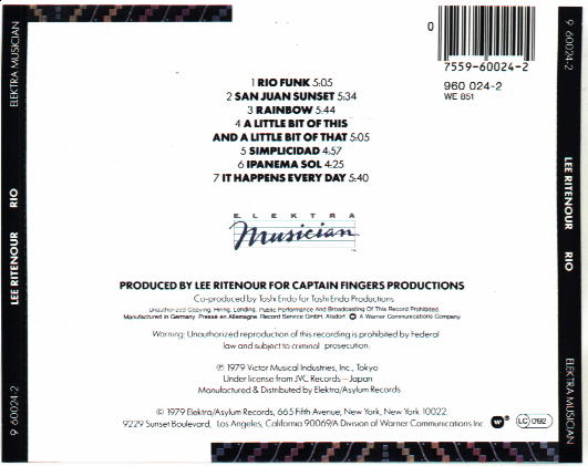 in Japan only, as "Lee Ritenour in Rio" on the JVC label, with Rainbow as