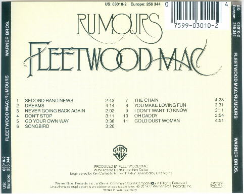 Jewel case info: (POLYGRAM disc with 1 cm gap tray insert) smooth frosted two-dimple case with nothing embossed on the back.