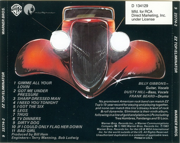 "Mfd. for BMG Direct Marketing, Inc. under License 134120D" at 9 o'clock..